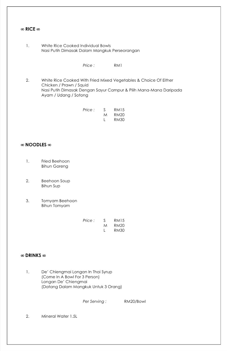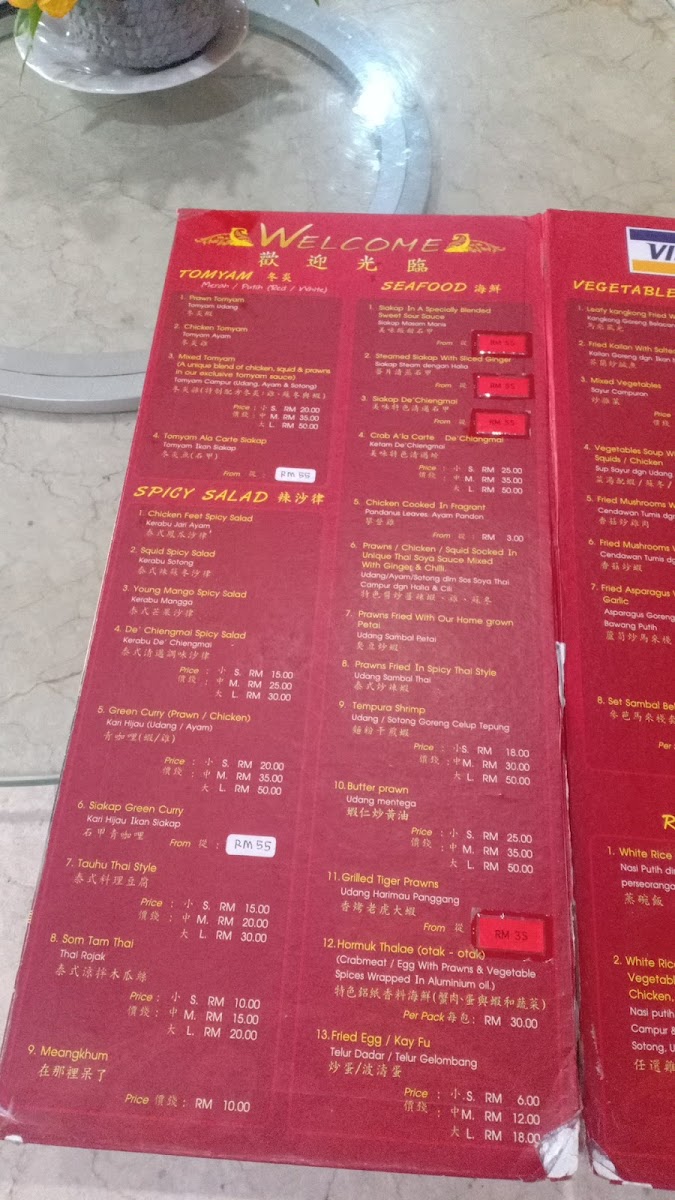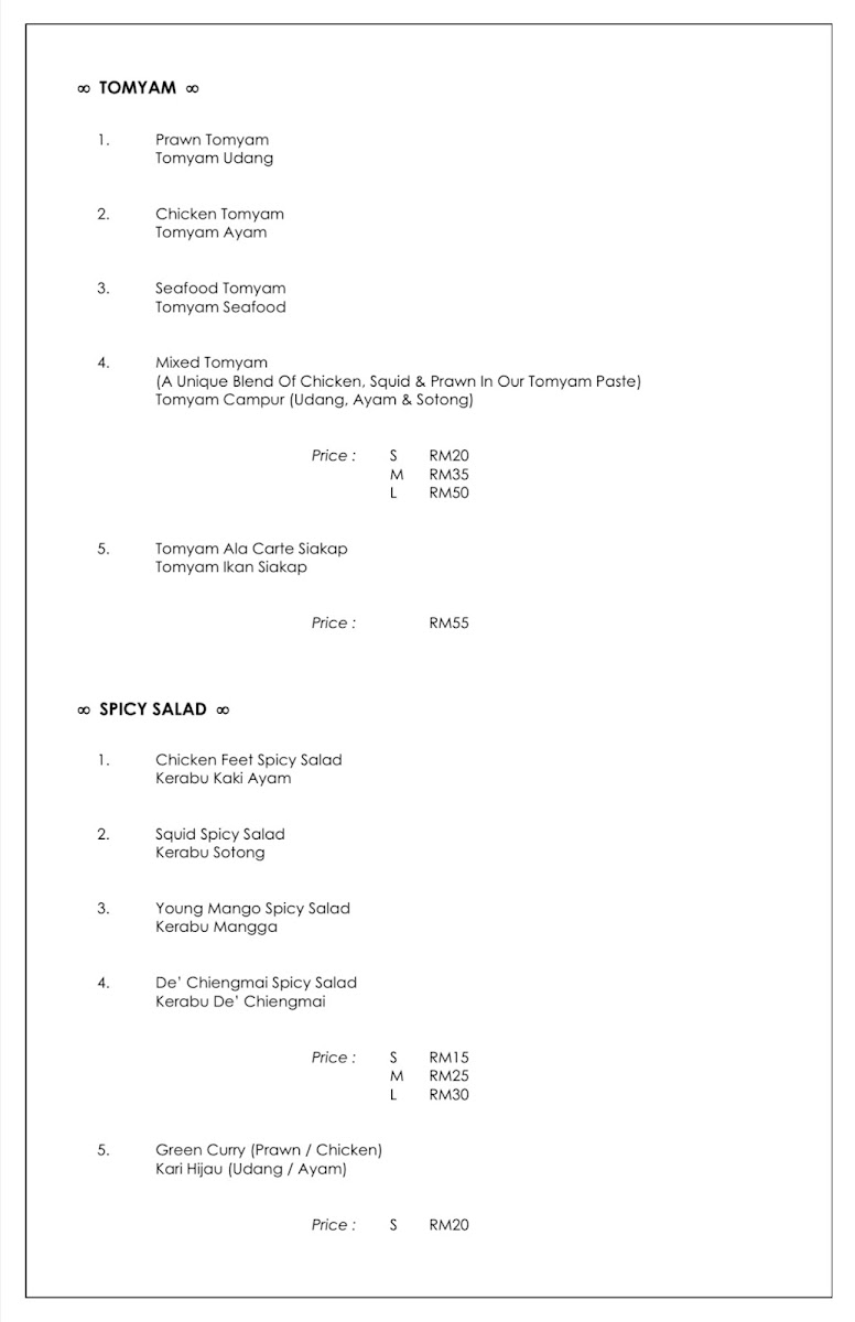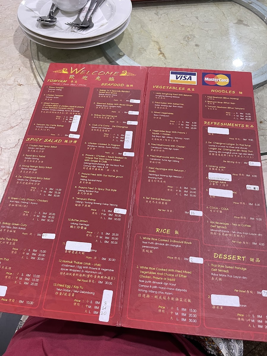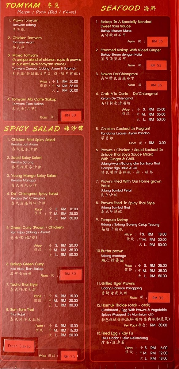 De Chiengmai Thai Seafood Restaurant Menu